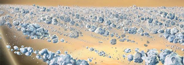 土星被大量水冰以及少许的岩石所组成的巨大圆环所包围。此环可以达185,000英里(300,000公里)的宽度,而颗粒以数千英里每小时行进。研究人员发现,环内的颗粒均为疏松且多孔的。当两个粒子碰撞,假如他们移动够慢,他们将合并成一个,但如果他们移动得太快,他们会粉碎掉。新的模型从数学上能解释这简单的行为有多么符合粒径奇特的精确分布。