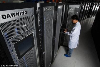 科学家还认为,存储在所有现在动植物DNA分子中的基因信息足以达到一百万兆台超级计算机的处理能力上限。图为上海超级计算机中心的曙光5000A超级计算机(Dawning 5000A)