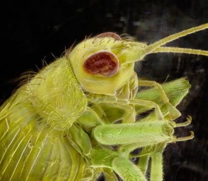 你可能会认为最奇怪的虫子会有最吸引人眼球的图像,但是Kariko说有时候反而看起来很普通的图像更令人惊艳。他最喜欢的图之一是棉铃象鼻虫,这种常见的害虫在照片中看起来就像是你在《星球大战》中看到的那些一样。“照片中它们会变得很有趣,这是人肉眼无法发现的。”