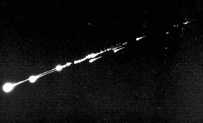 1992年10月9日,一个巨大的火球从美国东海岸的夜空中飞驰而过。它最初是在西弗吉尼亚州被人们看到,然后一直向东北方向飞去,最终落在纽约州的皮克斯基尔。其中一块碎片撞到了一辆汽车。由于它进入大气层的角度非常小,长达40秒的飞行让数千人都目睹了这一事件,并保留了许多不同角度的视频。