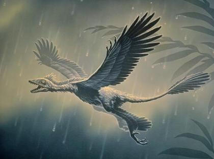 过去有一种观点认为,四翼恐龙在空中滑翔时,要么像风筝一样把四翼都平摊开来,要么像双翼飞机,把后翼至于前翼之下。