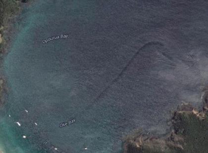 鲨鱼,不是!鲸鱼,不是!新西兰一名工程师近日在谷歌地图时发现新西兰北部奥凯湾(Oke Bay)有一个巨大的伴流。他将照片发到网上后,引发网友各种猜测和议论。有人猜测可能是浮木,也有人认为是海怪,或者只是一起恶作剧而已。但怀特希拉认为,那不是船只,因为正常情况下,船只经过会留下尾波。