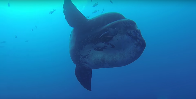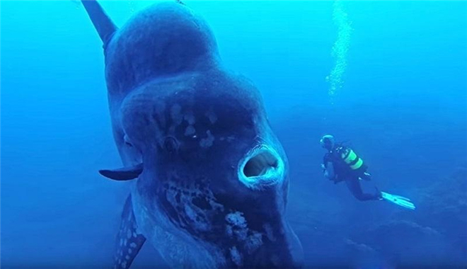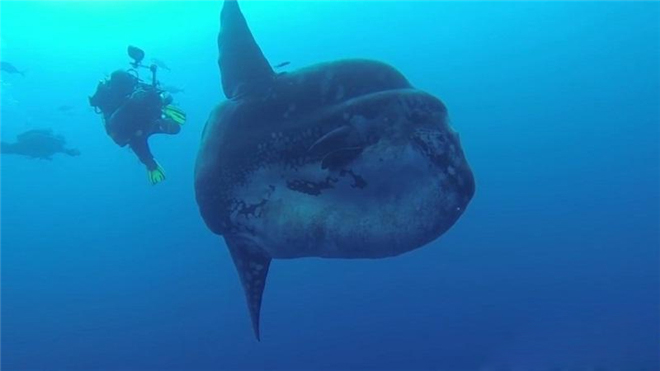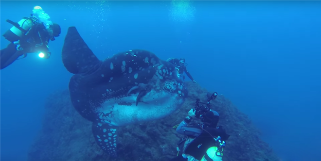 毫不奇怪他们能够看到这样的巨大翻车鱼,因为翻车鱼的体长能够达到4.2米,宽度能够达到60厘米。事实上《国家地理》杂志将翻车鱼描述为“就像一个巨大的浮动液滴”。这条温顺的大鱼向Pereira和他的潜水同伴们打起了招呼。