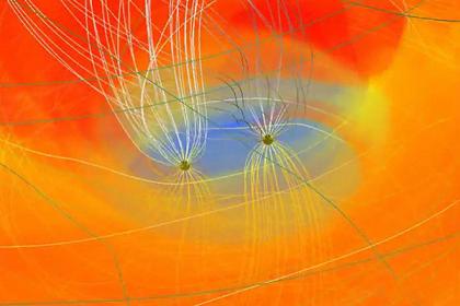 本项仿真测试来自伊利诺伊大学斯图尔特·夏皮罗博士和他的同事们,研究人员利用爱因斯坦的广义相对论模拟物质在一个强磁场中如何以接近光速的速度运动,暗示黑洞合并时周围时空也会出现类似的现象。当黑洞相互靠近时,黑洞周围的时空就变得非常不稳定,黑洞两极出现了极强的喷射流,引力波也非常强大,周围时空存在大规模涟漪。
