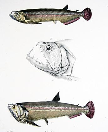 吸血鬼鲦鱼:这是一种并不令人恐惧的极小鱼类。但是当你近距离观察它们的嘴巴构造时,你或许就会了解为何它们被称为吸血鬼鱼。这种鱼只有1.7厘米长,大约从5千万年以前开始进化出牙齿。尽管它们近距离看非常可怕,但是它们就像吸血鬼宝宝,因为即使成年后仍然看起来像条幼鱼。