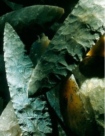 在上层墓室中发现9把公元600-700年间燧石刀,其中至少4把燧石刀上涂有蓝色涂料,这种色彩与涂在祭祀者身上的色彩一样,暗示这种神秘蓝色燧石刀可能用于祭祀杀戮。