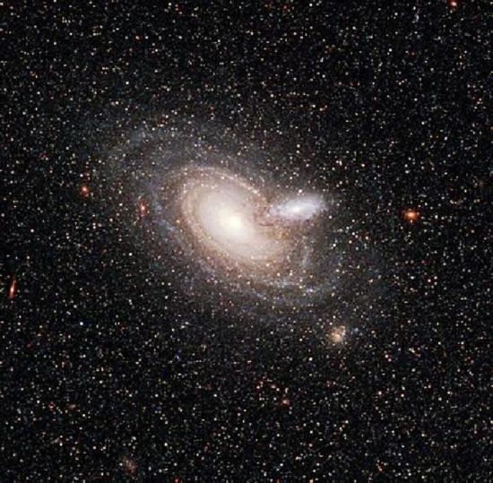 星系NGC 1512是一个位于时钟座星系里的棒旋星系,距离地球大约3000万光年。星系NGC 1512非常明亮,人们利用普通望远镜就能看到它。这个星系的直径大约是70000光年,几乎跟我们的银河系的直径一样大。这个星系中心是高度向心的星环,四周是由无数年轻的恒星构成的直径大约是2400光年的星团。