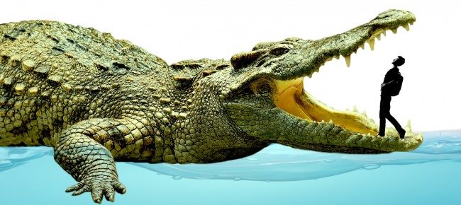 帝鳄:现代鳄鱼的祖先帝鳄生活在很久以前,他长约12米,会吃小恐龙,他咬合的力量可以达到15-20吨,可以直接将猎物撕成两半。