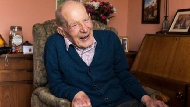 图片版权ANDREW O'BRIENImage caption苏格兰人阿尔弗莱德-史密斯活到111岁,他是典型的乐观派。