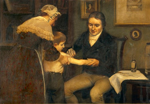 在1796年5月14日,一个八岁的男孩詹姆斯·菲普斯(James Phipps)的双臂上被接种了医师由挤奶女工莎拉·奈尔姆斯(Sarah Nelmes)手上的牛痘水泡刮下来的脓。接种第七天,男孩抱怨腋下不太舒服(应该是淋巴腺肿大?);第九天他发烧、头痛、没胃口,但是隔天就完全康复了。