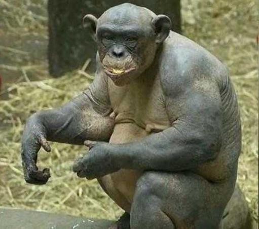 好吧...我还是习惯有毛发的猩猩,没有毛发的猩猩看起来真的有些暴露捏
