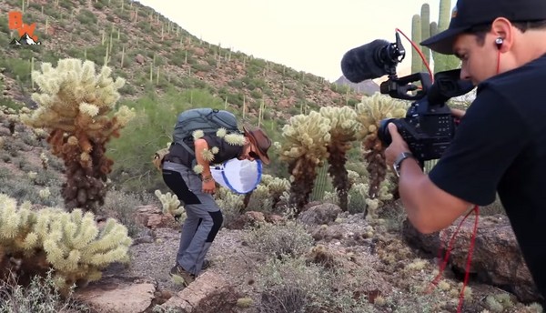 《勇闯荒野》主播郊狼彼得森(Coyote Peterson)是个狂人,过去曾尝试过各种疼痛体验,包括给鳄鱼咬、被水蛭吸血。这次为了捕捉一只够大的沙漠蛛蜂,他也不慎跌进仙人掌堆里扎得浑身伤。