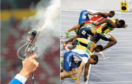 2.发令枪发出闪光,让运动员们看到开始的信号;