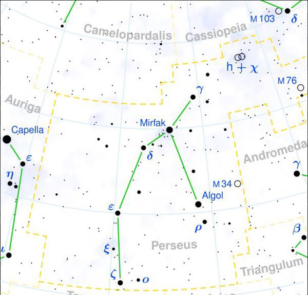 位于英仙座(Perseus)的此星系,最不寻常且最惊人的特性是,它的两颗主要恒星变暗,造成规律的重叠周期:此时星系中最显眼的恒星以较低的亮度闪耀着,地球上的观测者可以看到此现象,其实它是被较小的恒星遮住了,这个现象持续两天二十小时又四十九分钟。