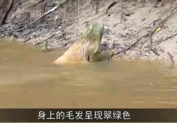 另一段则是有国外居民,在河边发现一只“长毛怪”,也是四肢修长,在水里载浮载沉,毛发呈现绿色,爬上岸的模样看起来相当诡异,直到居民上前查看真相,才发现是一只树懒,因为身上毛发长满青苔,才会看起来像“水鬼”。