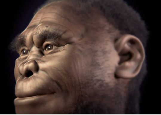 印尼佛洛勒斯岛出土哈比人化石。原始人示意图。