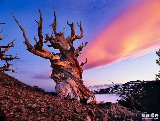 这棵远古狐尾松是世界上最古老的无性繁殖生物,已有4841年历史,它位于美国加利福尼亚州怀特山,为了保护这棵古树,它的具体位置对外是个秘密。