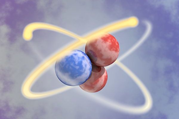 氦3原子示意图,包含原子核中的两个中子、一个质子和外围绕原子核旋转的两个电子。(Shutterstock)