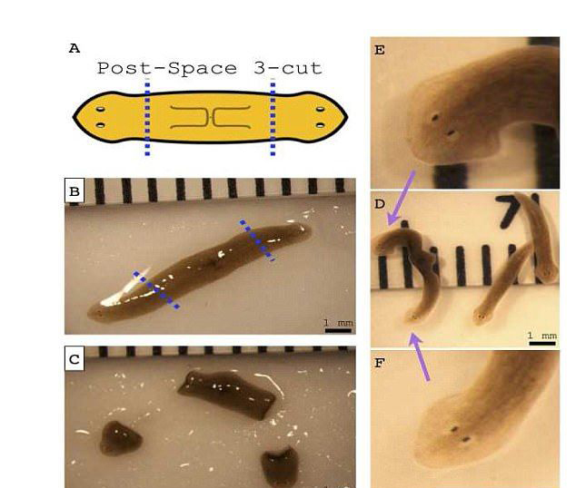 研究者选择研究涡虫(planarian flatworms,又称Dugesia japonica),它们经常被用于研究,因为它们的身体被切断时,还有能力再生。
