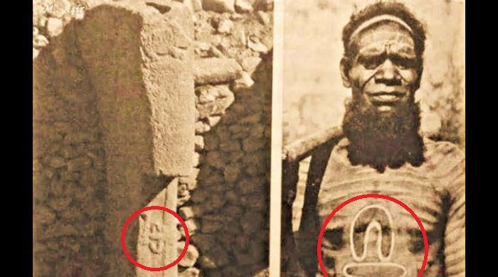 例如,这篇文章的主图显示哥贝克力石阵的一根支柱上的一个符号,在澳洲原住民长老的胸前也有同样的符号。 这是原住民的标志,以描绘两个人坐在一起分享知识。