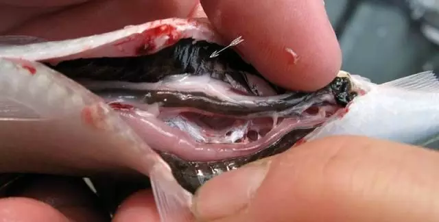 鲤科鱼类铜色突颌鱼肚子里的黑膜。图片来自:seagrant.wisc.edu