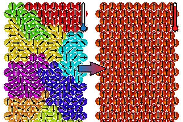 研究人员7月4日在《自然·物理学》上发表了对这一现象的研究。他们将钕从 -268⁰C 加热到 -265⁰C。仅仅加热3度,磁性材料的自旋就会冻结成固定样式从而具有整体磁性。如果再次降温,原子的自旋则又返回到通常的无序无磁状态。