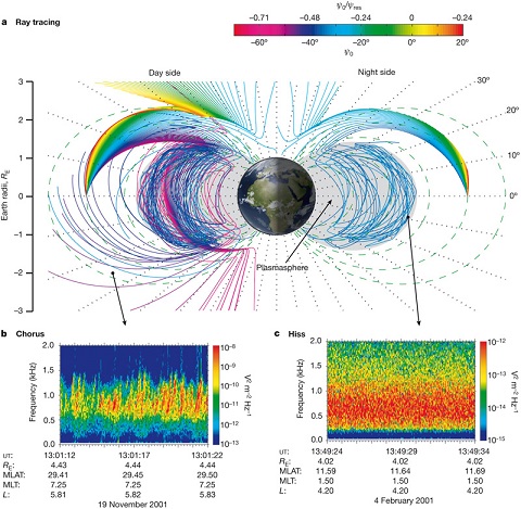 根据麻省理工学院新闻网站所写:“造成此种高能辐射的发生看起来不像地球磁场也不是远程无线电波,而是一种称为『等离子层嘶声』“plasmaspheric hiss”的现象,一种在地球大气层上的低频电磁波,如果使用扬声器拨放时就类似静电噪声或白噪声。”