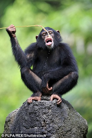 科学家们首次观察到野生黑猩猩使用棍子伸入树洞沾取里面的水分。