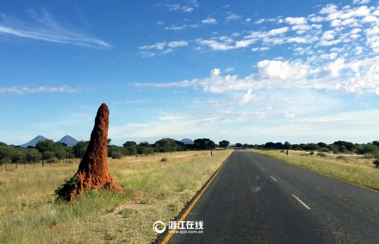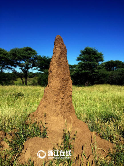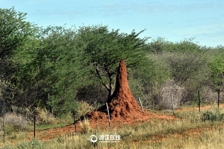 非洲的白蚁世界很有名,记者在非洲的纳米比亚看到各种各样的白蚁山。