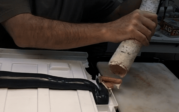 影片中,可以看到科学家小心翼翼地敲开活船蛆的碳酸钙管状硬壳,再把它倒出来,倒出来的瞬间,可以看到科学家相当兴奋啊~没想到它这么大一只!(虽然科学家们很开心,但其实小密看到都惊吓地说不出话了嘿嘿…)