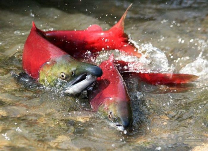 不过在洄游的路途上,鲑鱼需要面对各种天敌的威胁,常常洄游到目的地后便会离.世。产卵期的鲑鱼进入淡水之后,就会停止进食,最后用上最后的生命,把鱼卵埋在河底。