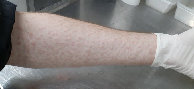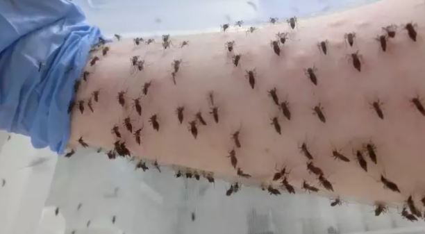 “我通常会先一次喂食大约250只雌蚊,再喂食下一组。一两小时喂完几千只蚊子后,我的手臂整只都是热的,而且到处都是包。”今年5月7日,罗斯破了先前的纪录,一次喂5千只蚊子16ml的血: