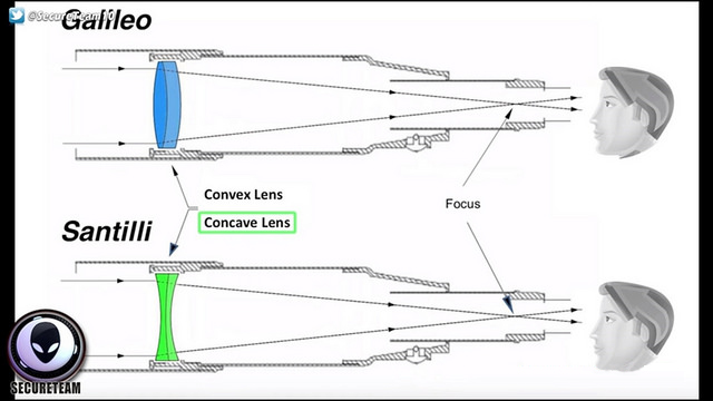 微型生命形式可能在地球上进行秘密监视, Santilli 望远镜用凹透镜,一般望远镜凸透镜;还在申请商标和专利。