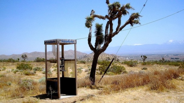 2. 这个电话亭位于莫哈韦沙漠的中间。
