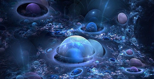想想一下3种颜色的染料滴在水池里。最初,它们仍然隔得很远的个别的点,但是随着时间过去,颜色散开、混合,最后就只有一种颜色。这就是宇宙;在这种情况下,这些点可以是生物生命容器。
