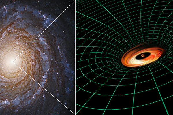 有趣的是,这个吸积盘提供了一个独特的测试爱因斯坦相对论的机会。根据广义相对论,吸积盘所发出的光会被黑洞强烈的引力扭曲。这样一来,天文学家就能够看到非常靠近黑洞的光的动态过程。