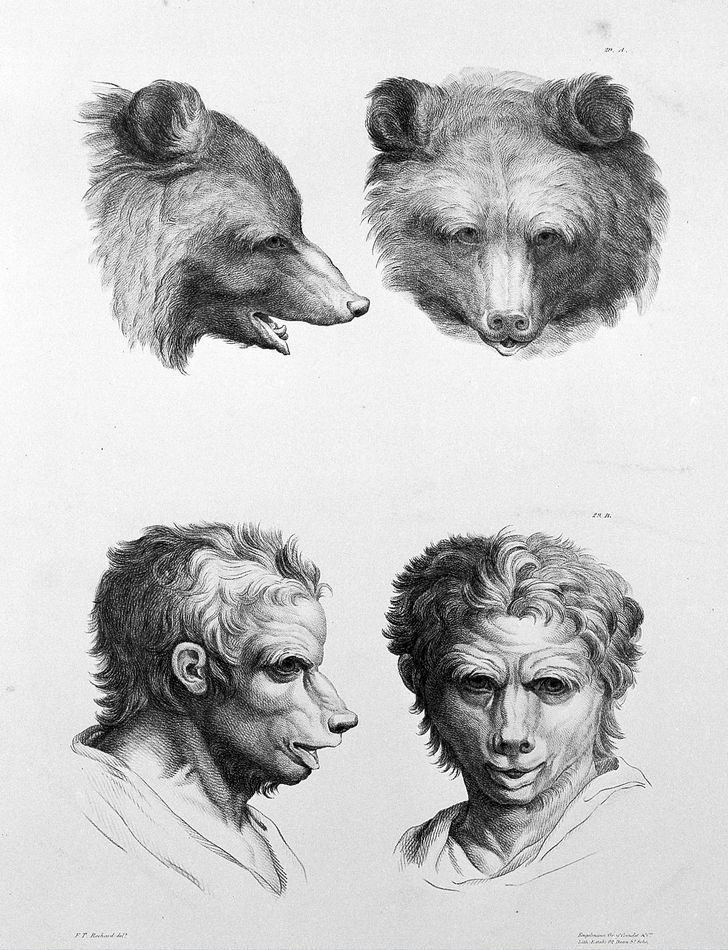 大家都知道人类是从猿类演化来的,所以我们跟猿有很多相似处。对了,你知道人类的DNA跟香蕉也有50%是一样的吗?好啦,今天要分享的是查尔斯·勒·布伦 (Charles Le Brun) 的作品,让大家见识看看如果人类是其他动物演化而来的话会长怎样!