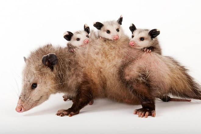 世界上有超过60种负鼠(图为维吉尼亚负鼠),它们大部分数千年来都没有太多改变。 Photograph by Joel Sartore, National Geographic Photo Ark