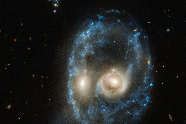 NASA在10月28日公布这张由该局的哈伯太空望远镜(Hubble Space Telescope)在6月19日拍摄的图片。图片中两个正在发生碰撞的星系构成了一张脸孔。