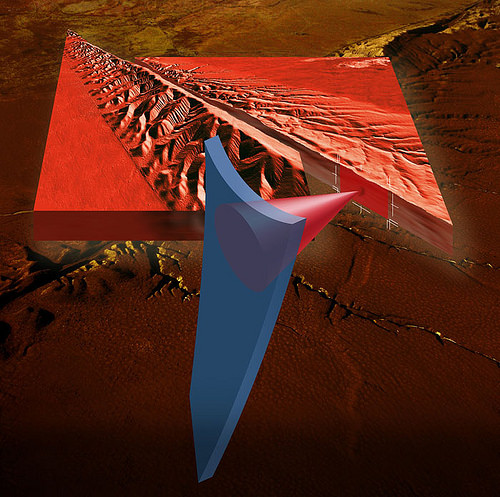 Carpick说:“当我们更用力推时,我们正在做的是增加顶端和样品之间的接触面积,导致摩擦随着正常力增加。”