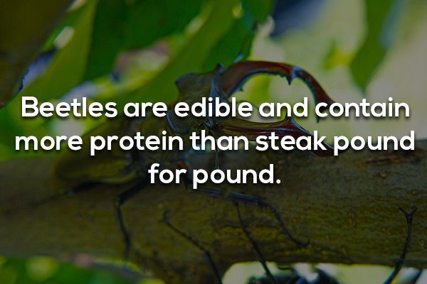 17. 甲虫是可食的,而且蛋白质比牛排还要高。