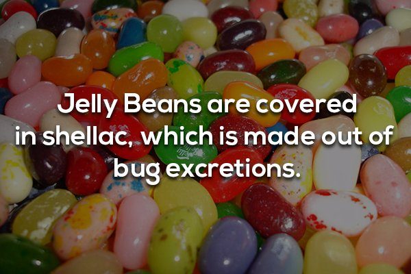 18. 软心豆粒糖的外层是用昆虫排泄物做的虫胶漆。
