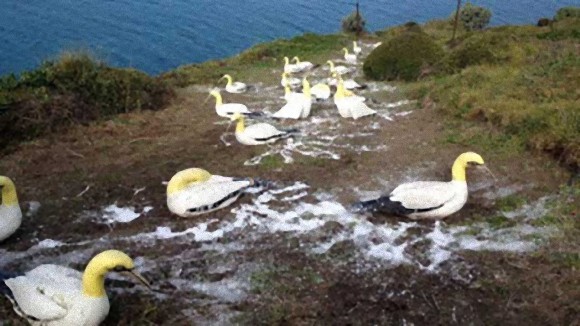 新西兰的马纳岛(Mana Island)为了让塘鹅在岛上筑巢,1976年,在靠海的悬崖上,摆上了80只水泥制的塘鹅塑像,希望吸引其它塘鹅(非水泥制的)来此筑巢。