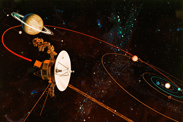 美国航空航天局(NASA)的旅行者1号(Voyager 1)和旅行者2号空间探测器在执行研究木星和土星的任务时轨道示意图。(Space Frontiers/Archive Photos/Getty Images)