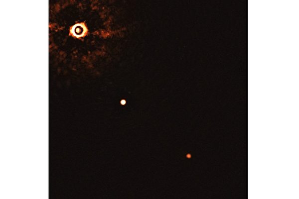欧洲南方天文台(ESO)的超大望远镜(VLT)首次拍到了两颗地外行星绕其太阳运行的照片。(ESO/Bohn)