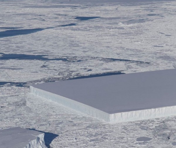 南极拉森冰棚区域,赫然出现一座矩形的巨大冰山。