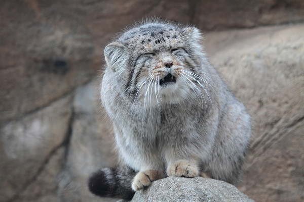 因为兔狲分布区只在中亚、数量很少,加上很长一段时间里,人类都在狩猎兔狲的毛皮,因此被归类为近危物种。