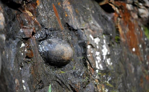 悬崖是由寒武纪时期大约5亿年前形成的一种常见的钙质石(calcareous rock)组成的。 另一方面,蛋是由更坚韧、更重的沉积物构成。 这意味着在长时间的降雨或突然的土石流期间,悬崖面往往会比蛋更快地消失。“蛋”的圆度很可能是被流水形成,但是还不清楚如何或为什么这么多陷入岩石中。
