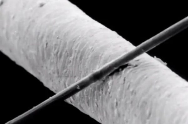 和人类头发相比的纳米线: Thai et al./UC Irvine via YouTube