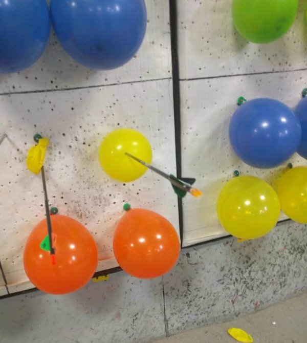 首先这并不是一个魔术,上传这张照片的家伙给我们还原当时的场景:气球是个正常没有做过手脚的气球,并且由人类用嘴吹大。箭头是一个11岁的男孩从10米开外的室内射向气球的。这是加拿大Brockley剑术俱乐部举办的比赛,那天其他的气球都炸掉了。
